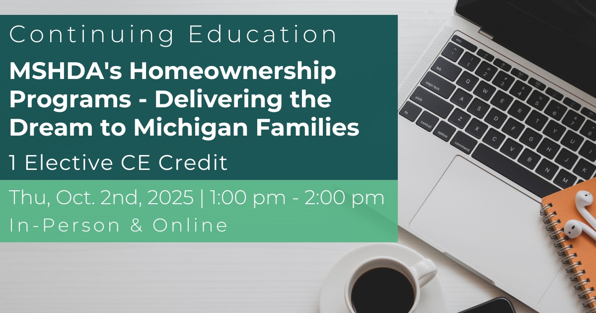 Join us on Thursday, October 2 from 1:00 pm – 2:00 pm for MSHDA's Homeownership Programs - Delivering the Dream to Michigan Families, presented by Nancy Baker.